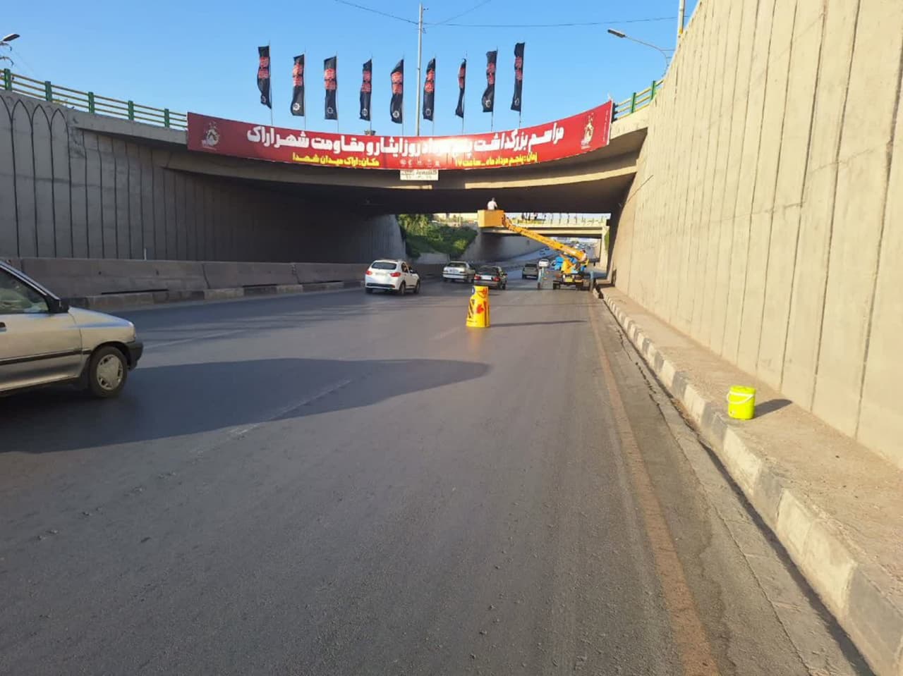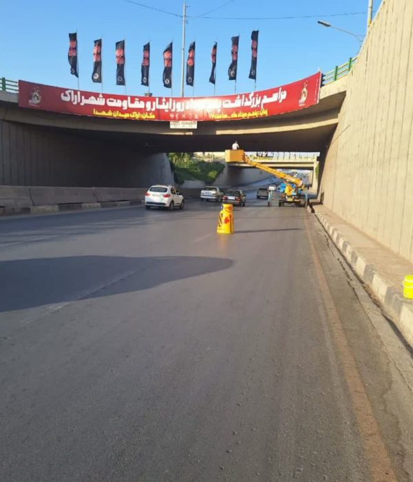 نصب بنر های تبلیغاتی مراسم گرامیداشت شهدای پنج مرداد روز ایثار و مقاومت شهر اراک
